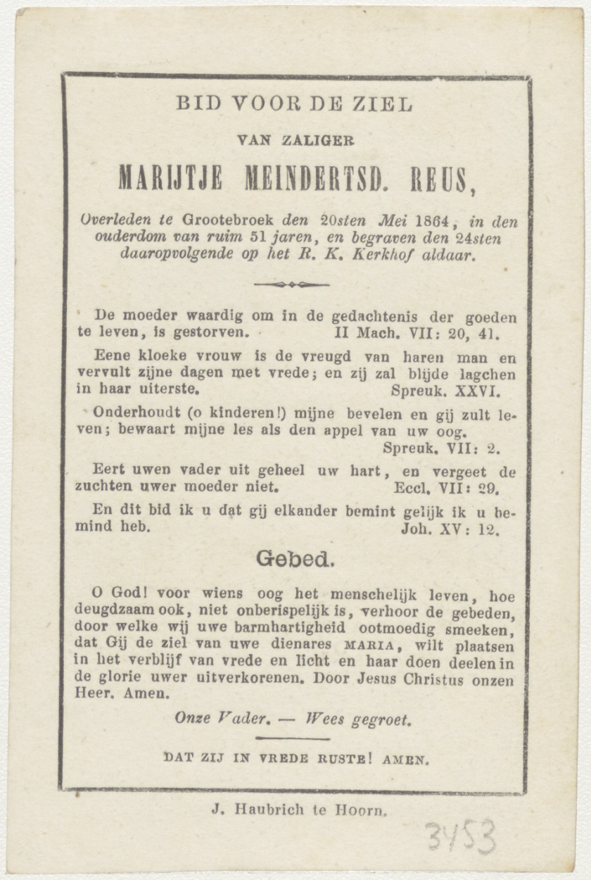 Christus kruisiging, kz. bid voor ziel Reus (+1864) Grootebroek