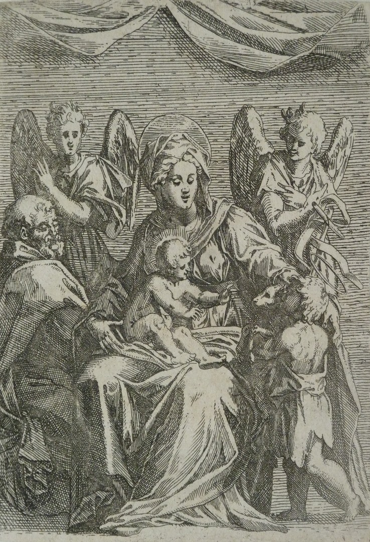 Maria met kind, engelen, Johannes de Doper en Jozef