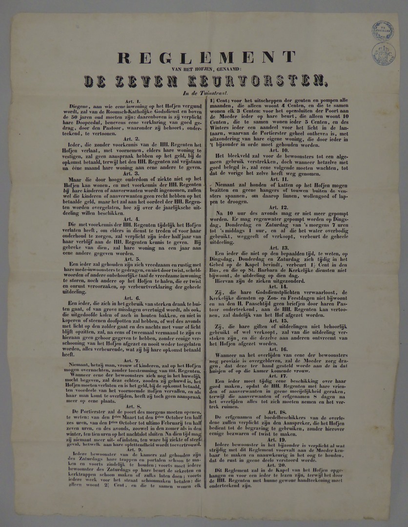 Reglement van het hofje, genaamd de Zeven Keurvorsten, Tuinstraat