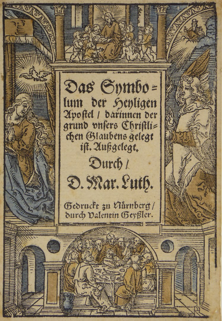 Passie uit Lutherbijbel (serie): titelpagina "Das Unmbolum der heiligen Apostel...", ingekleurd