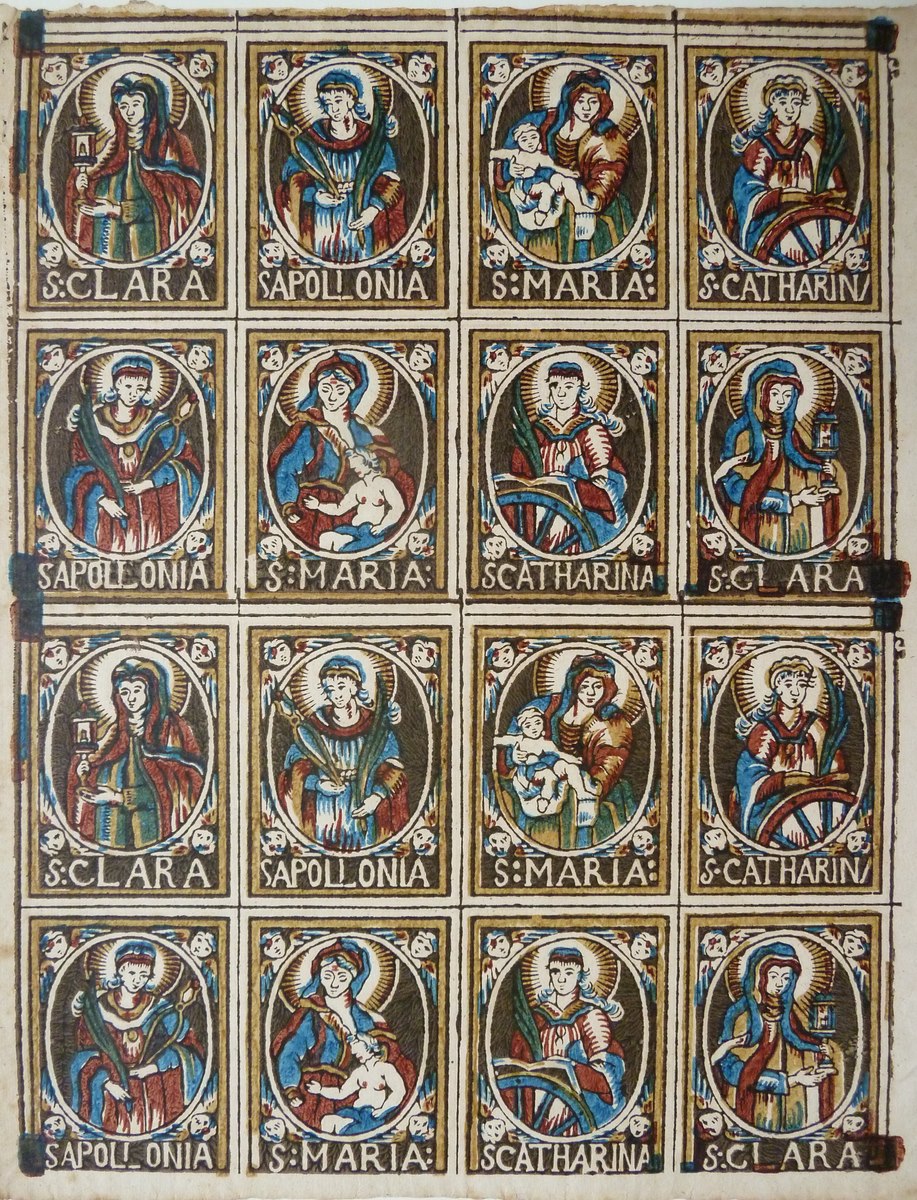 Clara, Apollonia, Maria, Catharina in verschillende gedaanten, meerkleurendruk
