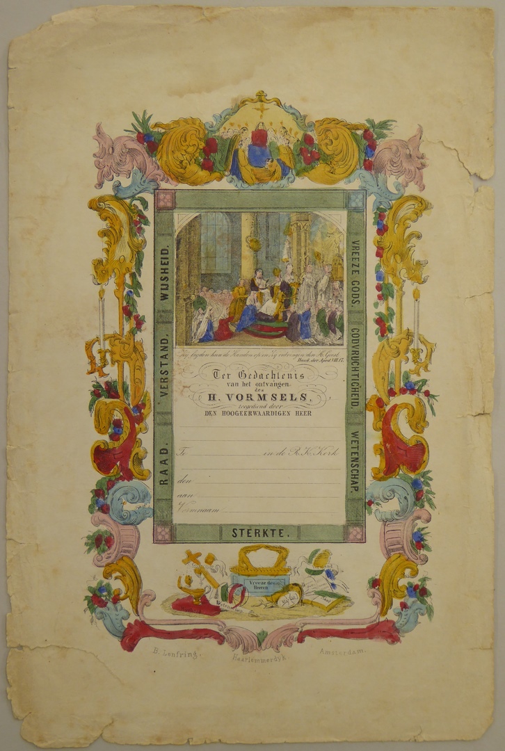 Vormselprent met "Zij legden hun de handen op ...", ingekleurd