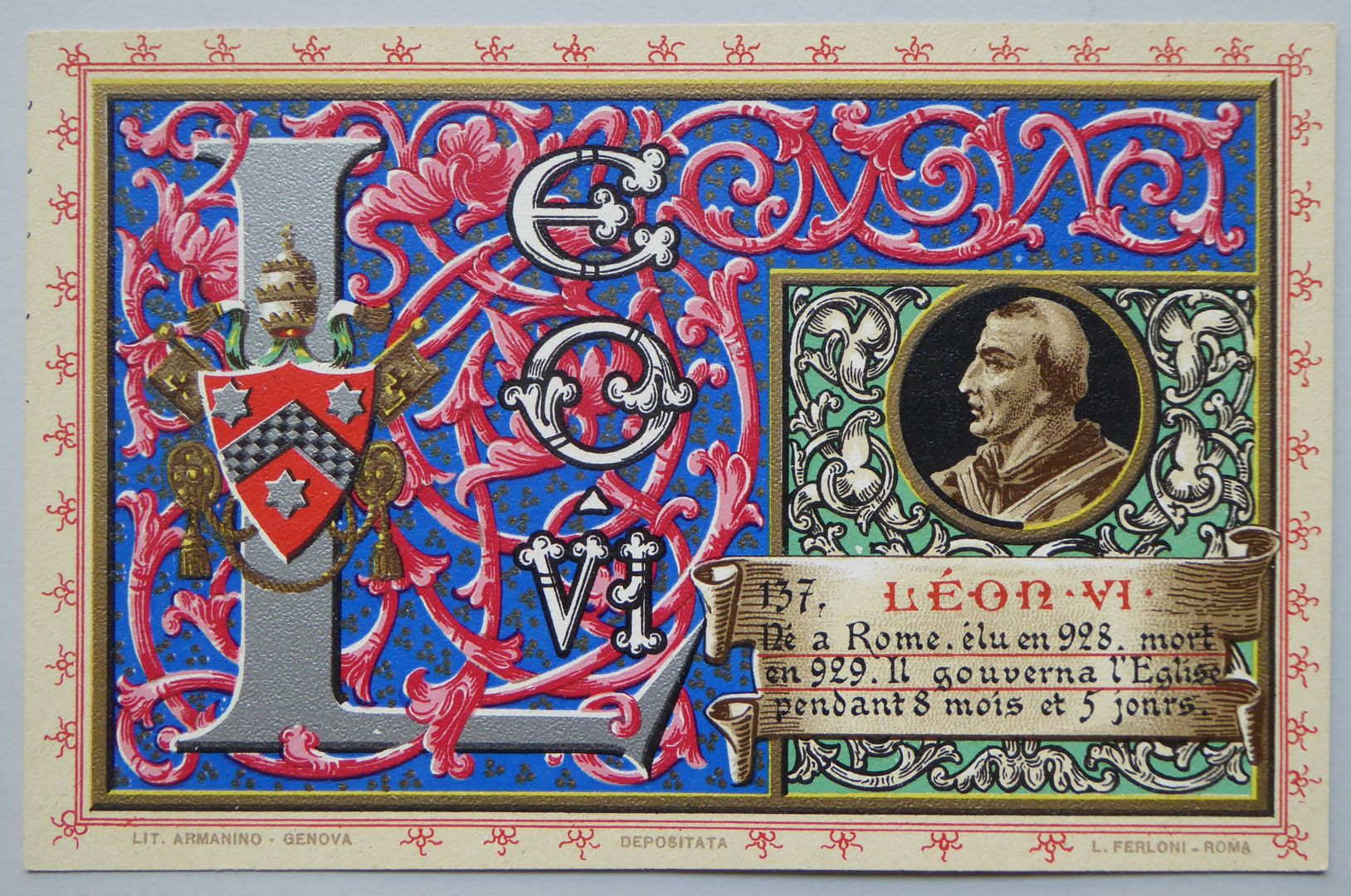 Serie prentbriefkaarten in mapje (XII): paus Leo VI (928-929)