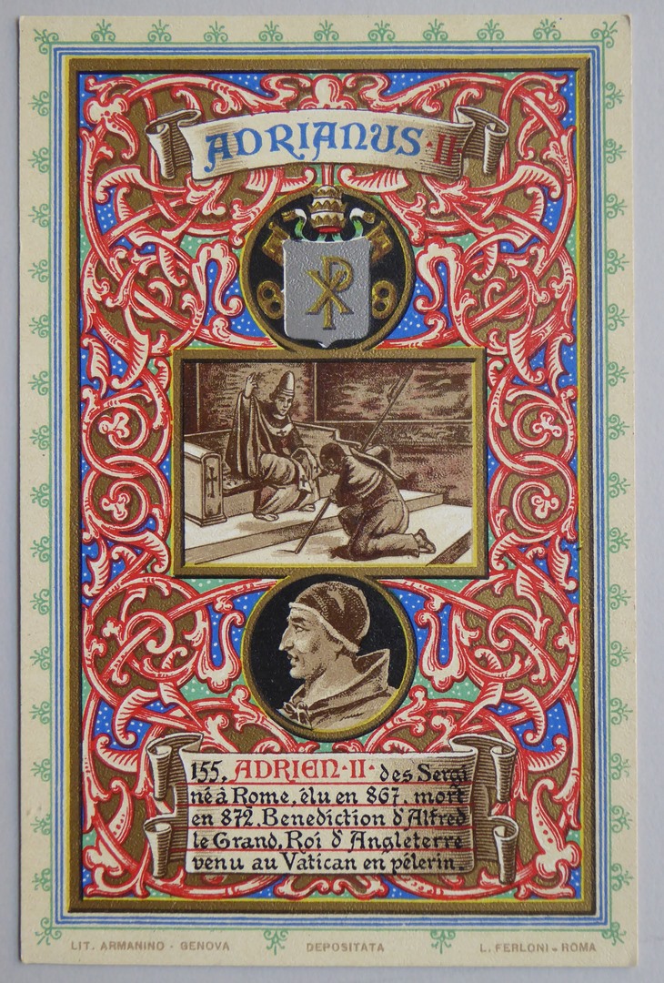 Serie prentbriefkaarten in mapje (XIII): paus Adrianus II (867-872)