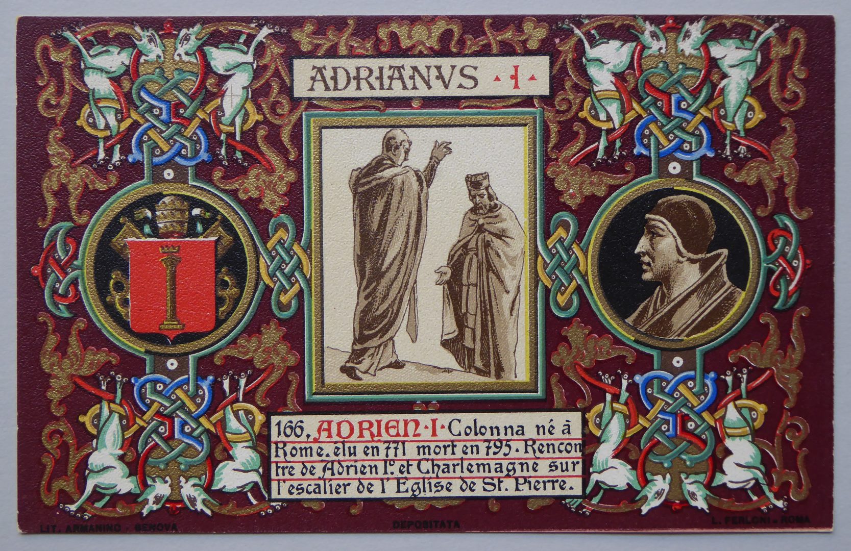 Serie prentbriefkaarten in mapje (XIV): paus Adrianus I (771-795)