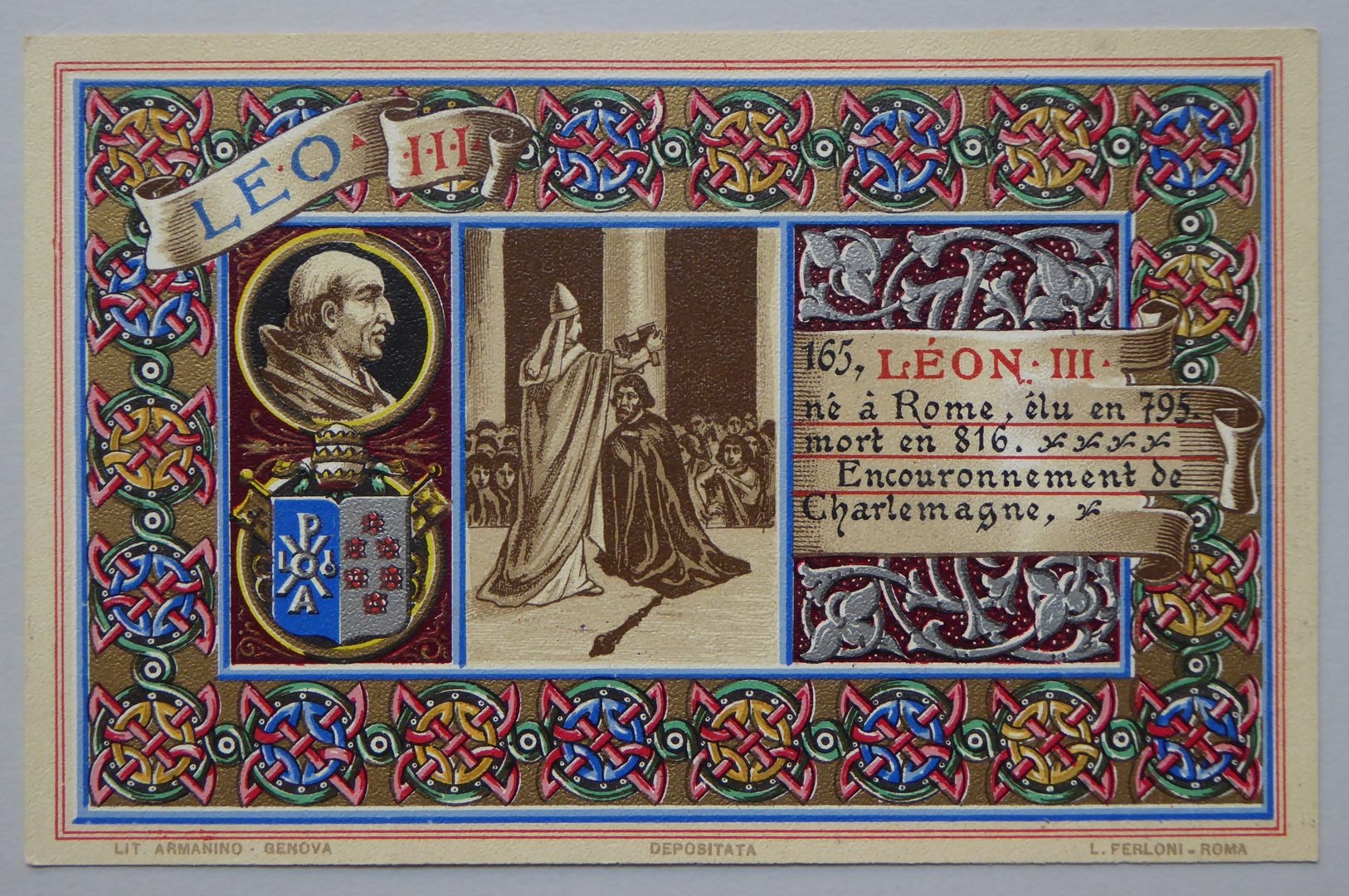 Serie prentbriefkaarten in mapje (XIV): paus Leo III (795-816)