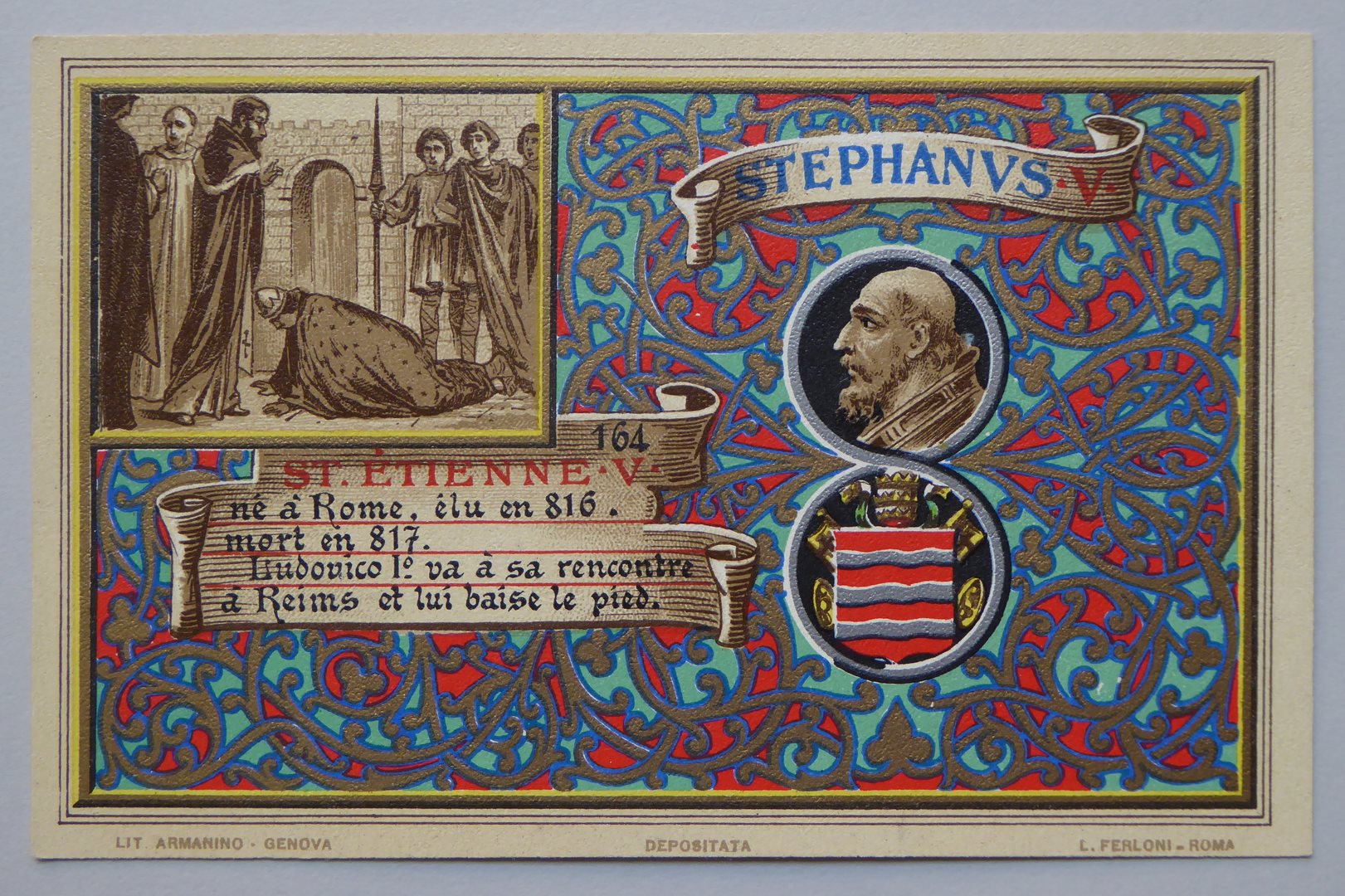 Serie prentbriefkaarten in mapje (XIV): paus Stephanus V (816-817)