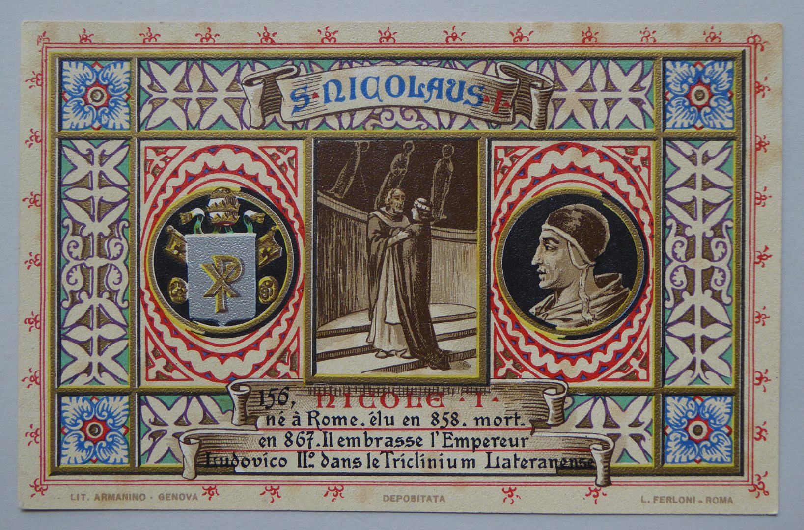 Serie prentbriefkaarten in mapje (XIV): paus Nicolaas I (858-867)