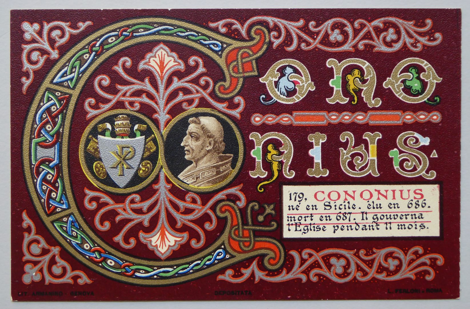 Serie prentbriefkaarten in mapje (XV): paus Conon (686-687)