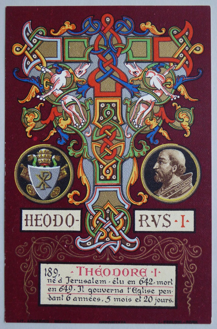 Serie prentbriefkaarten in mapje (XVI): paus Theodorus I (642-649)