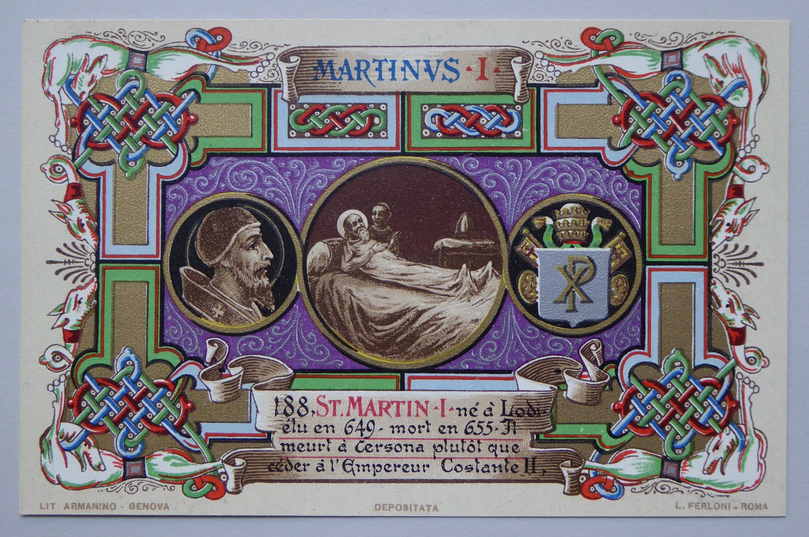 Serie prentbriefkaarten in mapje (XVI): paus Martinus I (649-655)