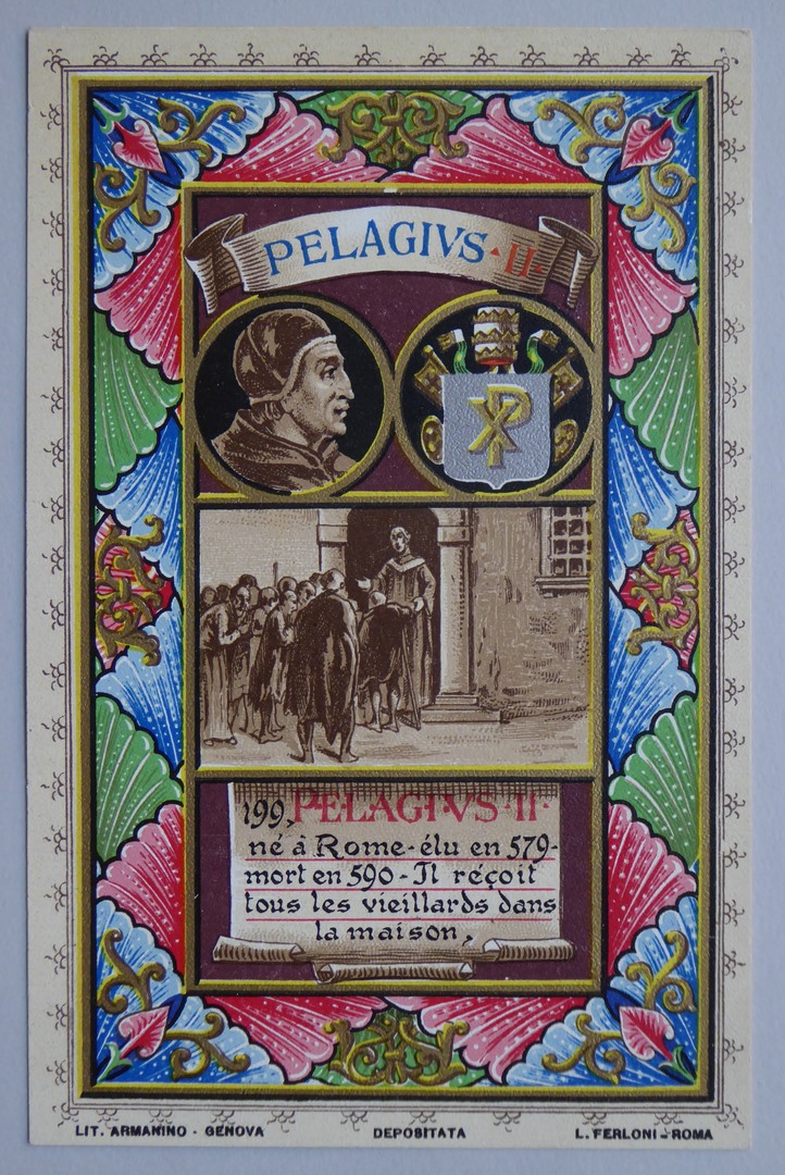 Serie prentbriefkaarten in mapje (XVII): paus Pelagius II (579-590)