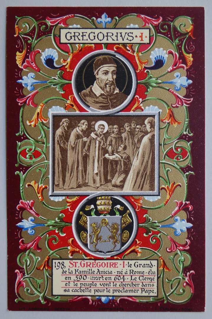 Serie prentbriefkaarten in mapje (XVII): paus Gregorius I (590-604)