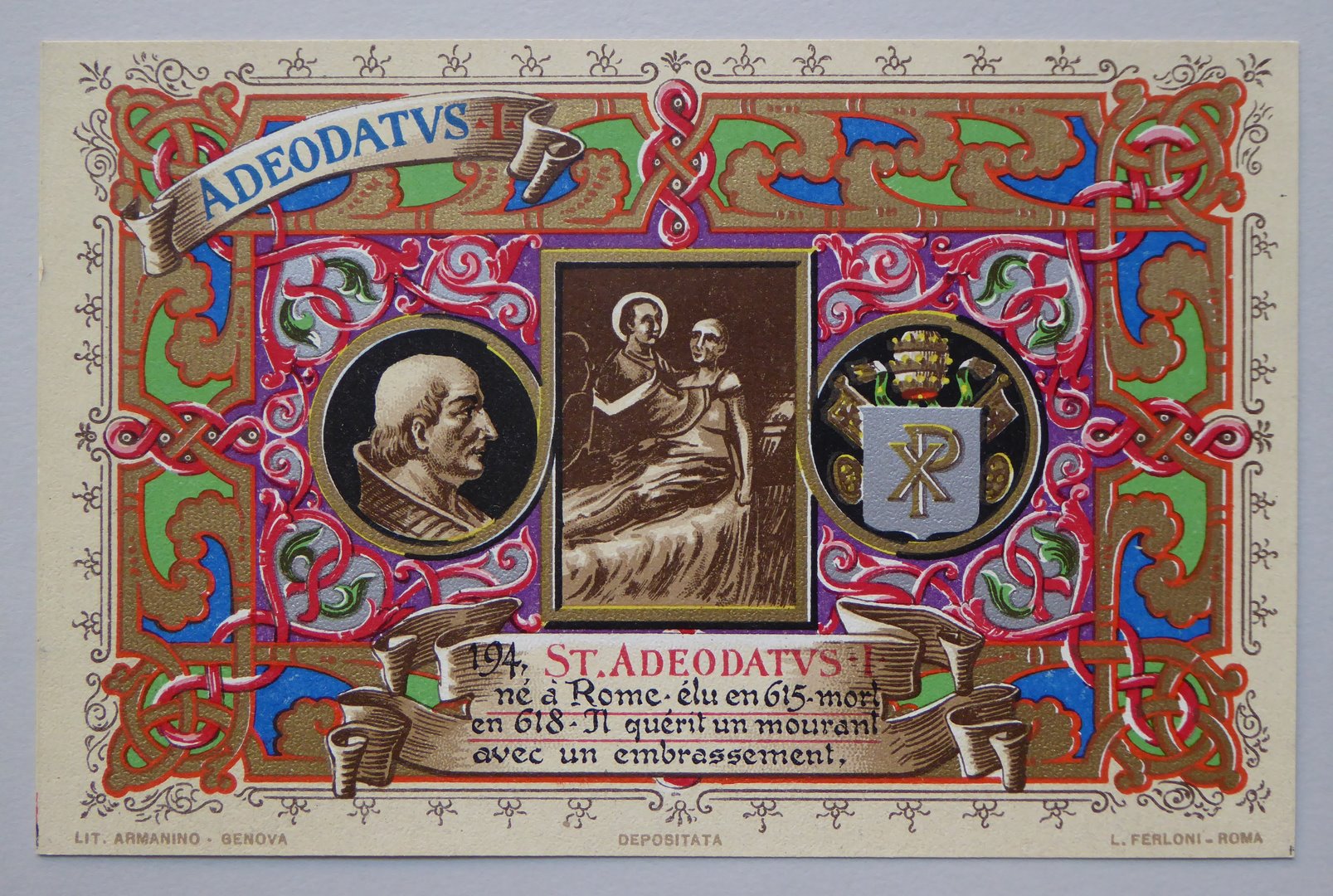 Serie prentbriefkaarten in mapje (XVII): paus Adeodatus I (Deusdedit I) (615-618)
