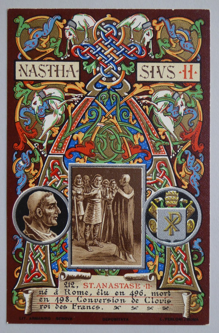 Serie prentbriefkaarten in mapje (XVIII): paus Anastasius II (496-498)