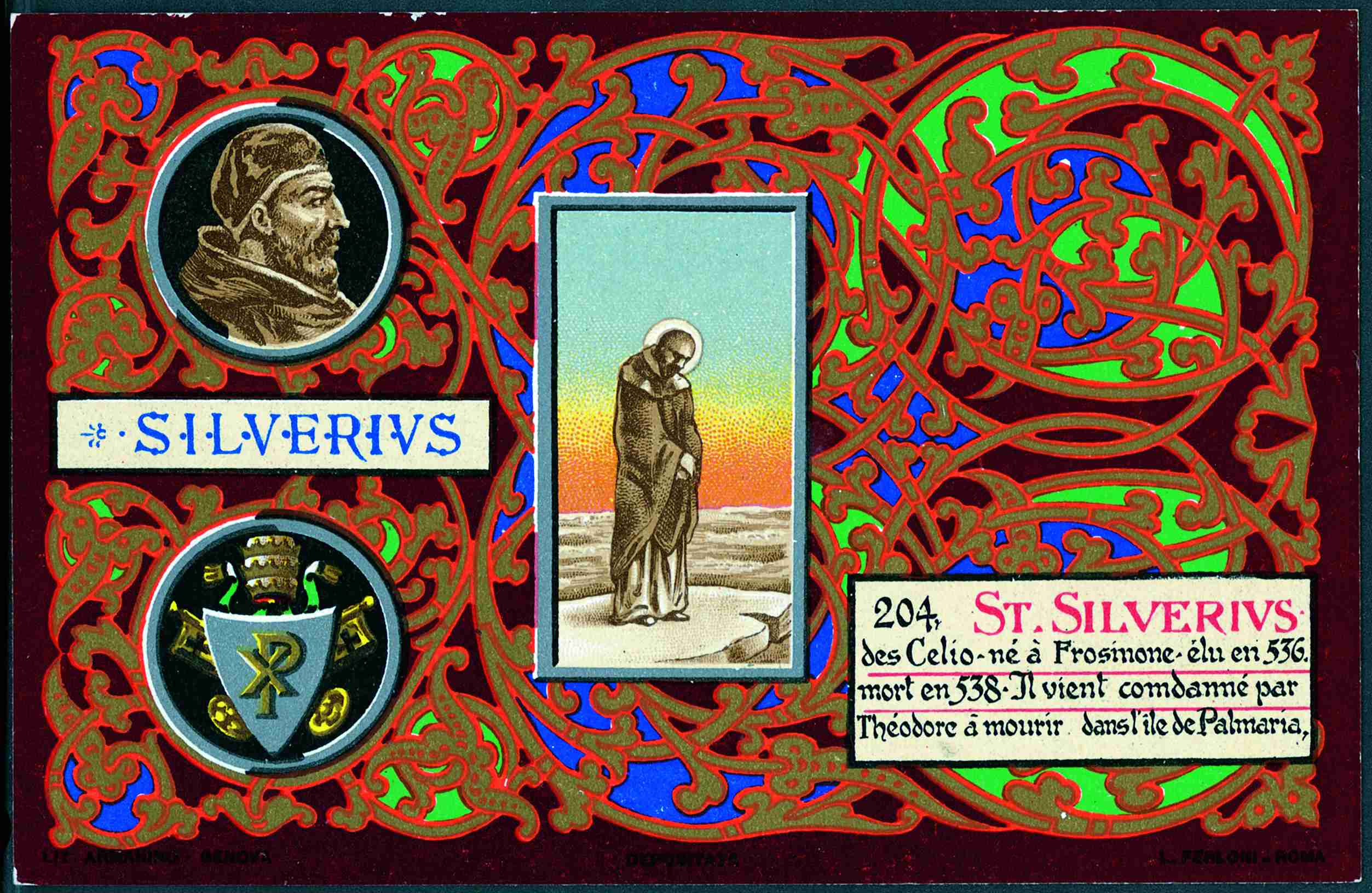 Serie prentbriefkaarten in mapje (XVIII): paus Silverius (536-538)