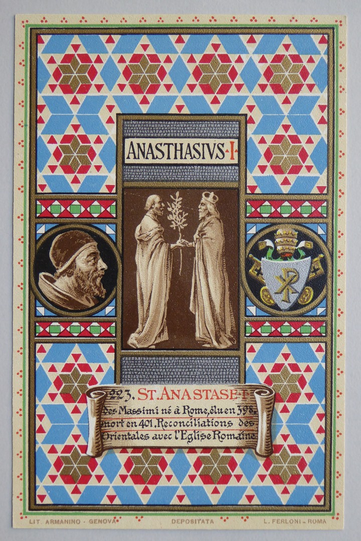 Serie prentbriefkaarten in mapje (XIX): paus Anastasius I (398-401)
