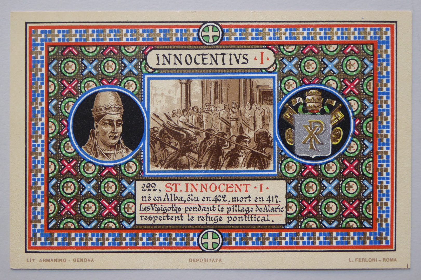 Serie prentbriefkaarten in mapje (XIX): paus Innocentius I (402-417)