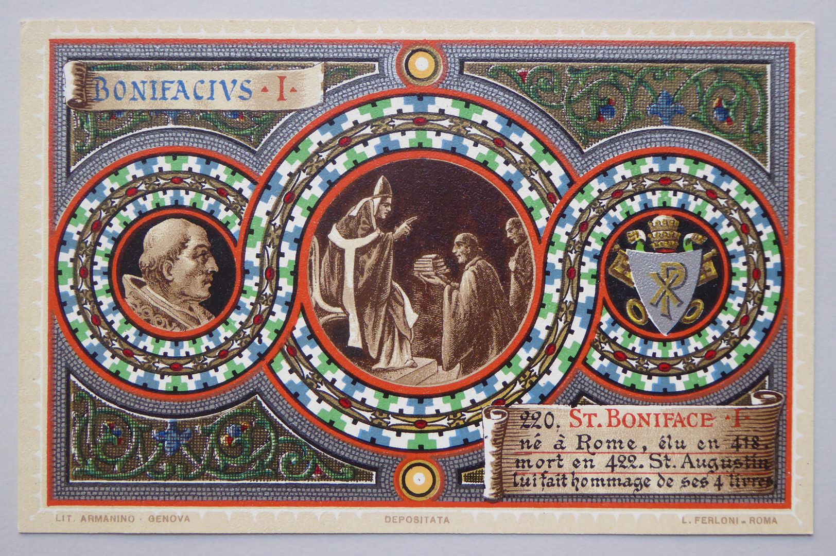 Serie prentbriefkaarten in mapje (XIX): paus Bonifatius I (418-422)