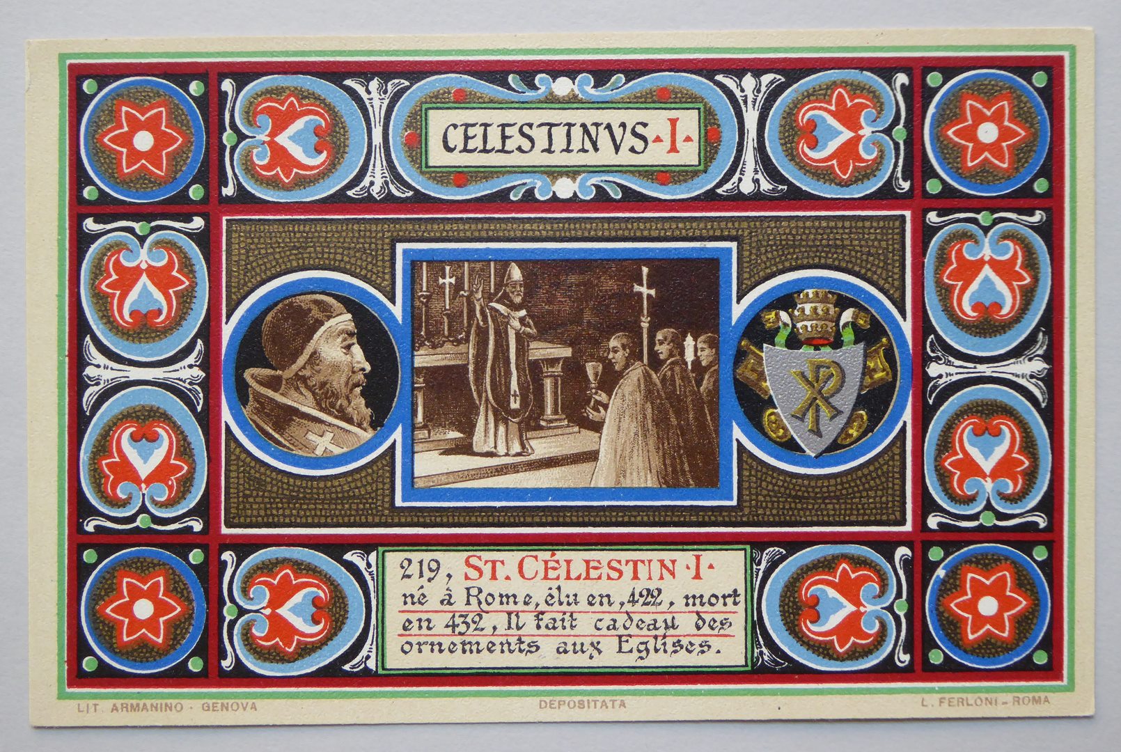 Serie prentbriefkaarten in mapje (XIX): paus Celestinus I (422-432)