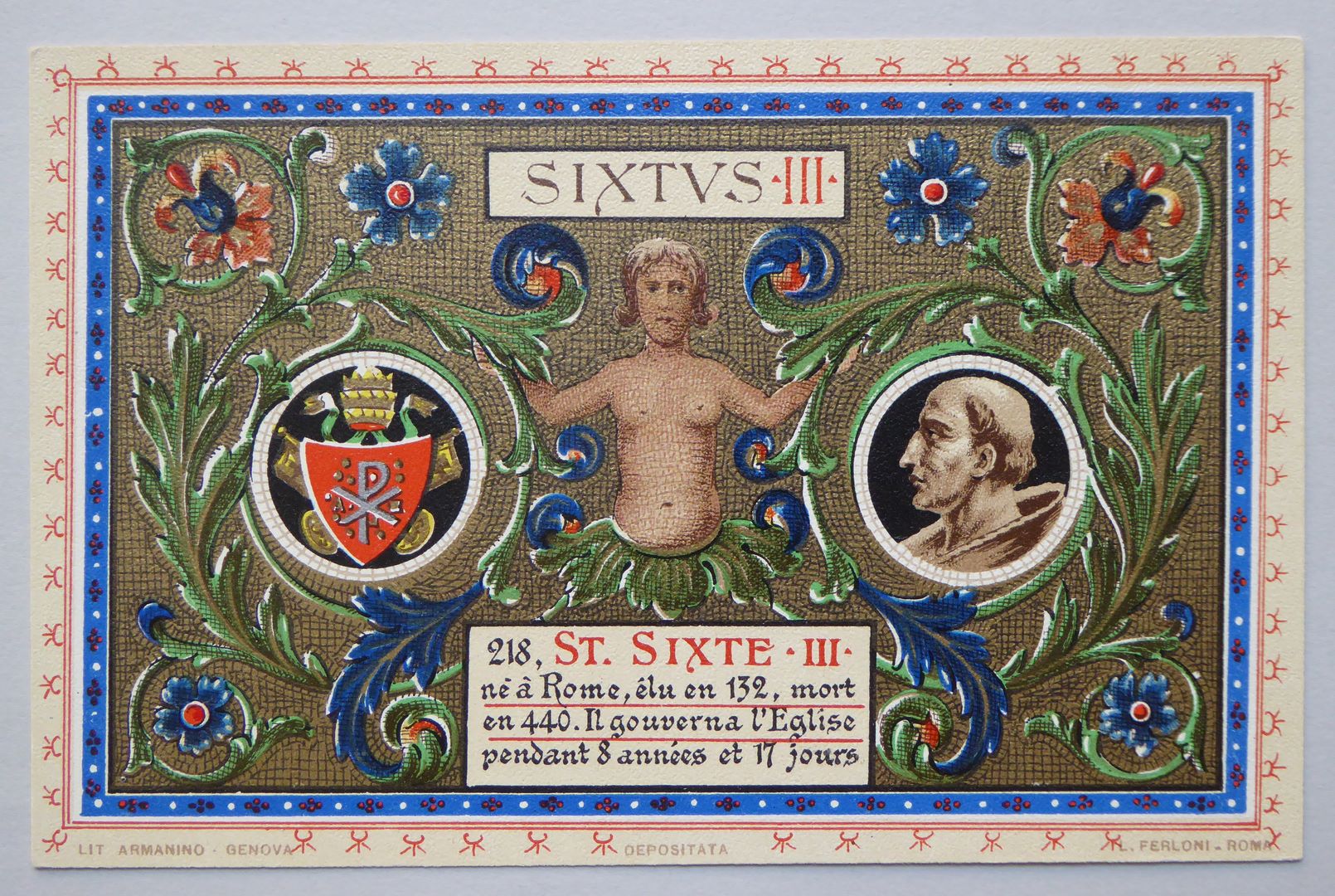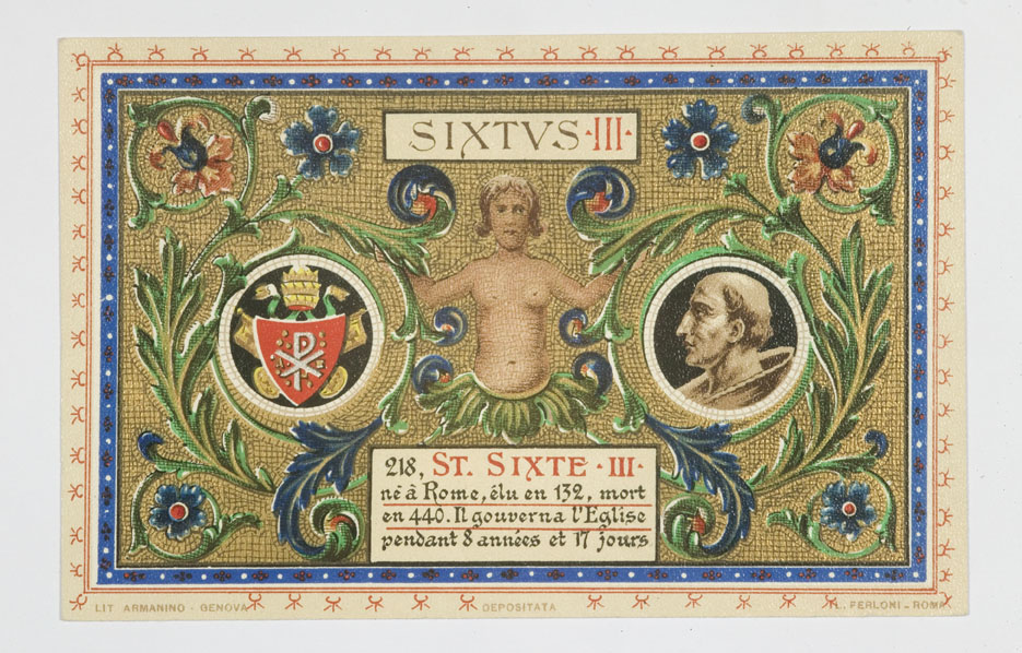 Serie prentbriefkaarten in mapje (XIX): paus Sixtus III (432-440)