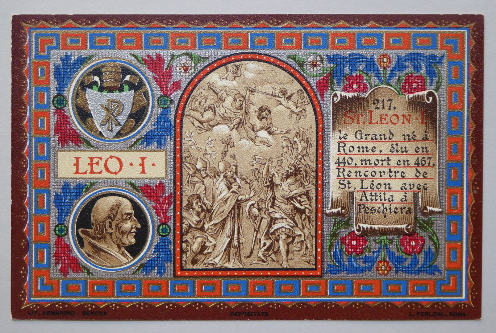 Serie prentbriefkaarten in mapje (XIX): paus Leo I (440-461)
