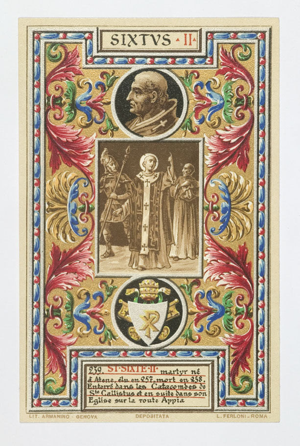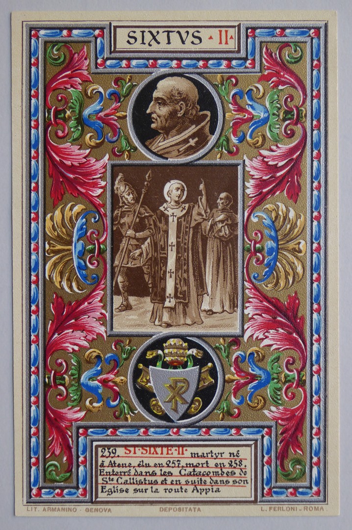 Serie prentbriefkaarten in mapje (XX): paus Sixtus II (257-258)