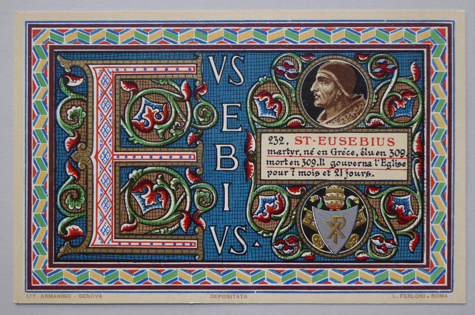 Serie prentbriefkaarten in mapje (XX): paus Eusebius (309-309)