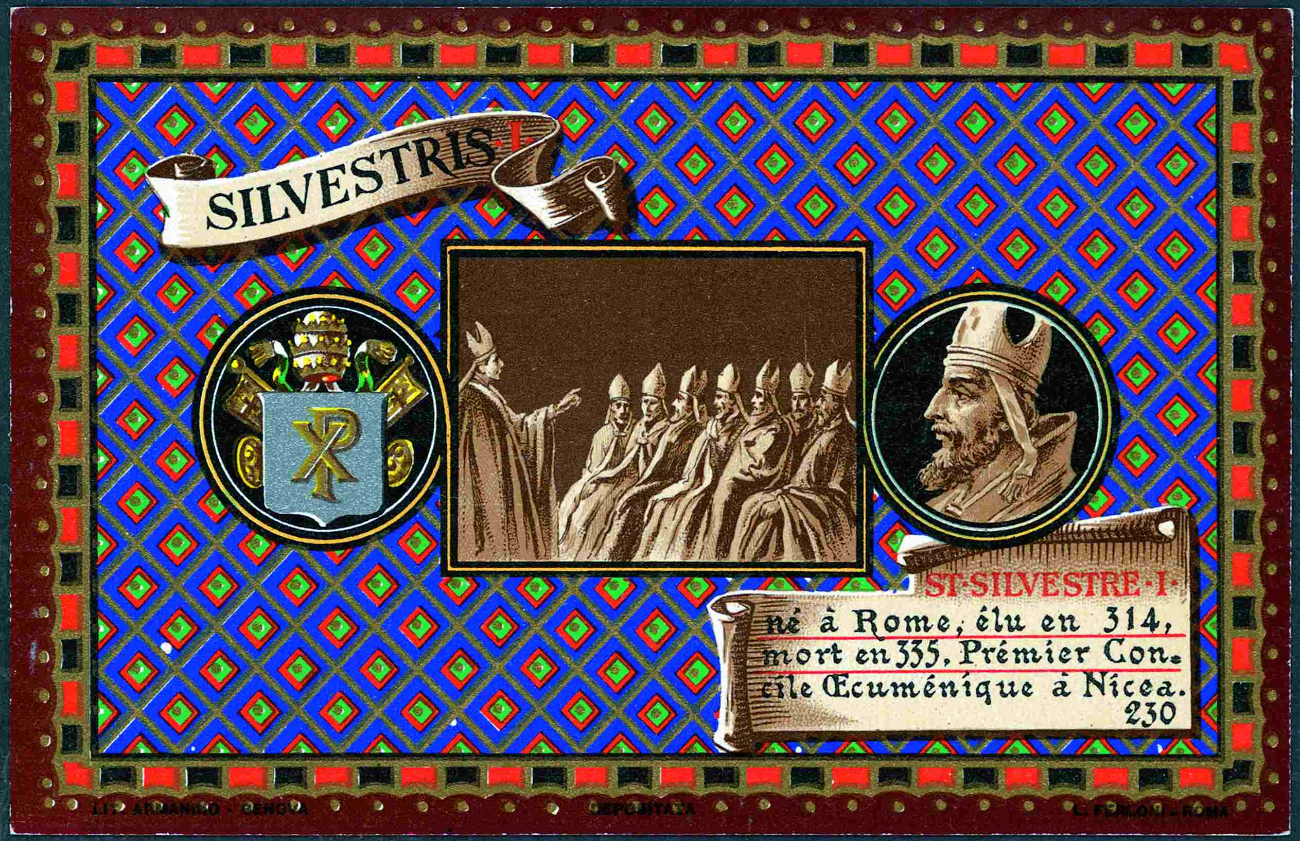 Serie prentbriefkaarten in mapje (XX): paus Silvester I (314-335)