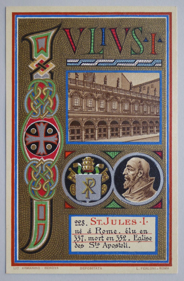 Serie prentbriefkaarten in mapje (XX): paus Julius I (337-352)