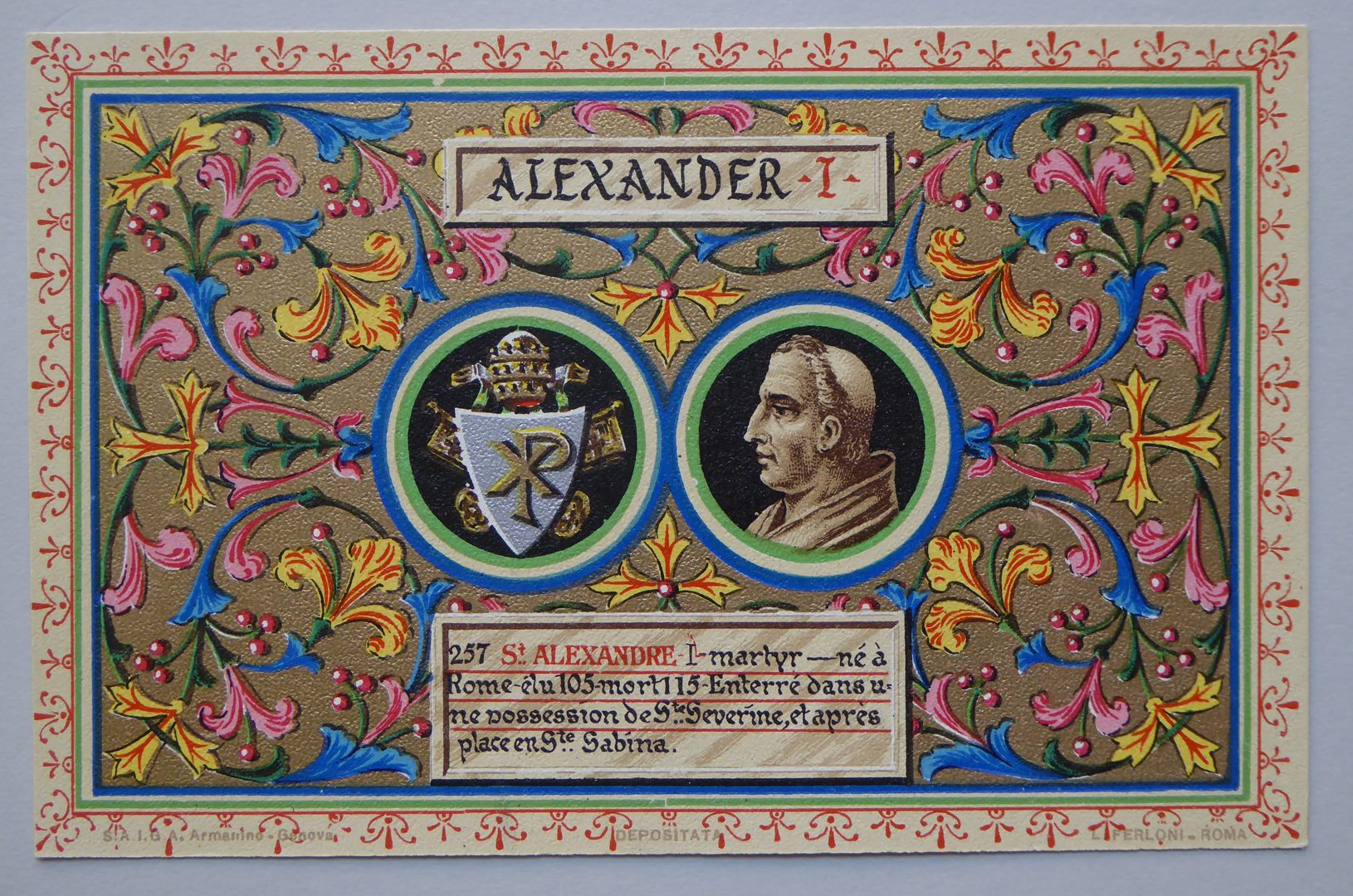 Serie prentbriefkaarten in mapje (XXII): paus Alexander I (105-115)