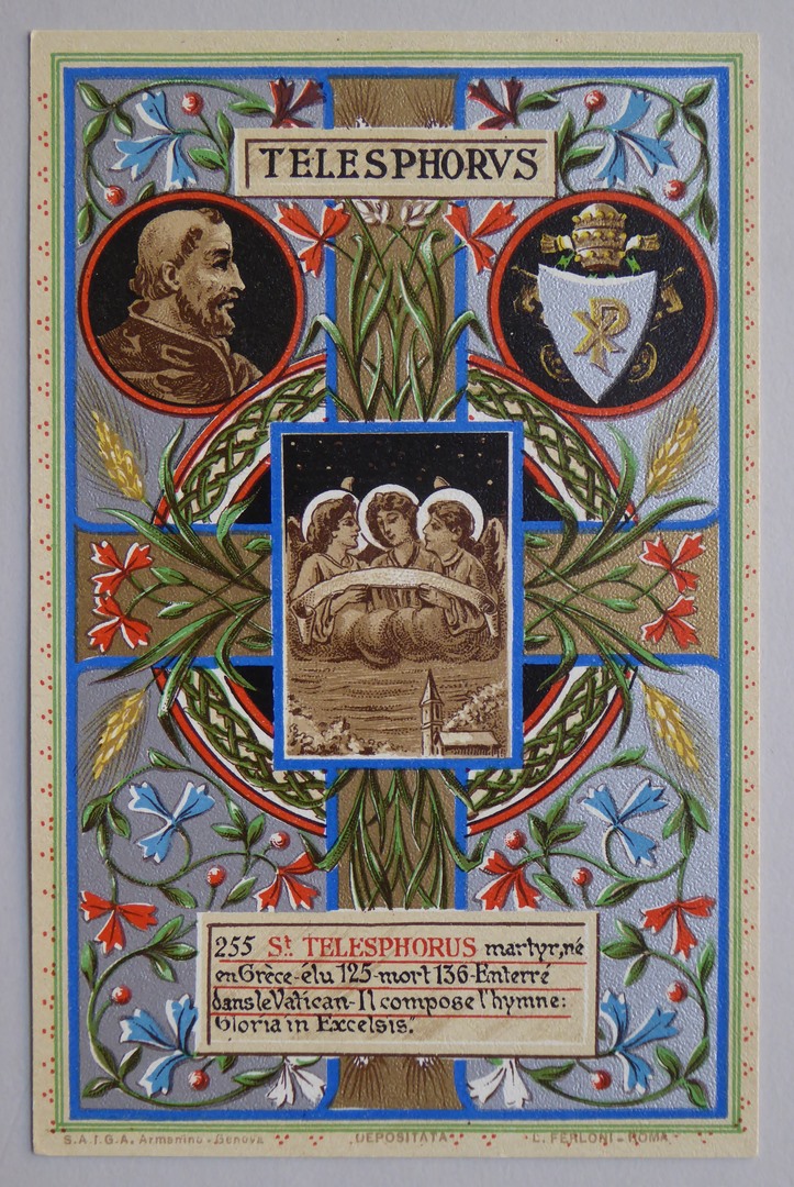 Serie prentbriefkaarten in mapje (XXII): paus Telesphores (125-136)