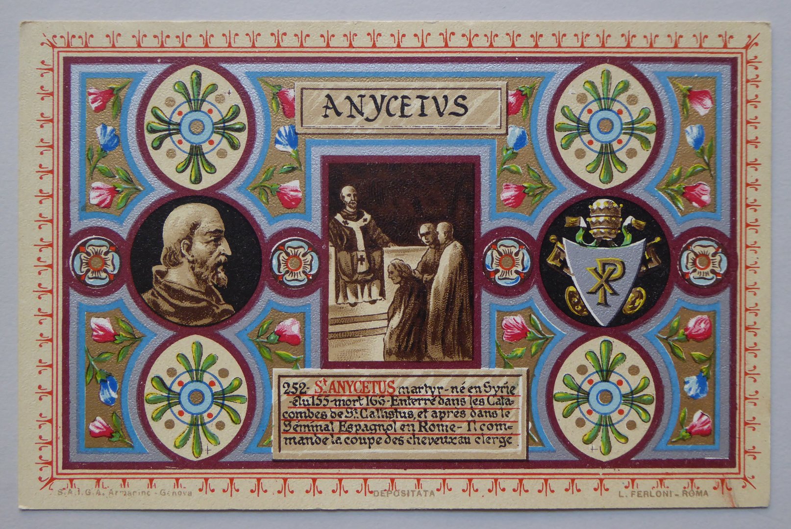 Serie prentbriefkaarten in mapje (XXII): paus Anicetus (155-165)