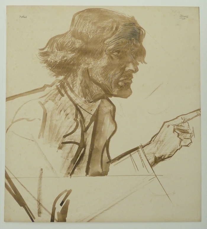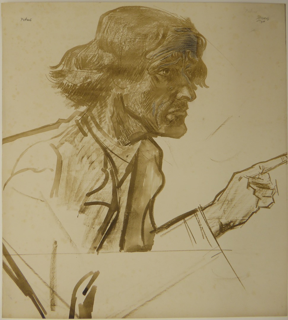 Serie fotoreproducties van apostelfiguren laatste avondmaal (1910): H. Petrus (ingekleurd)
