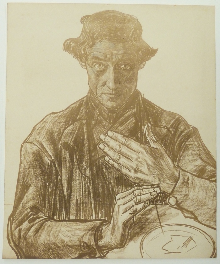 Serie fotoreproducties van apostelfiguren laatste avondmaal (1910): H. Simon de IJveraar (ingekleurd)