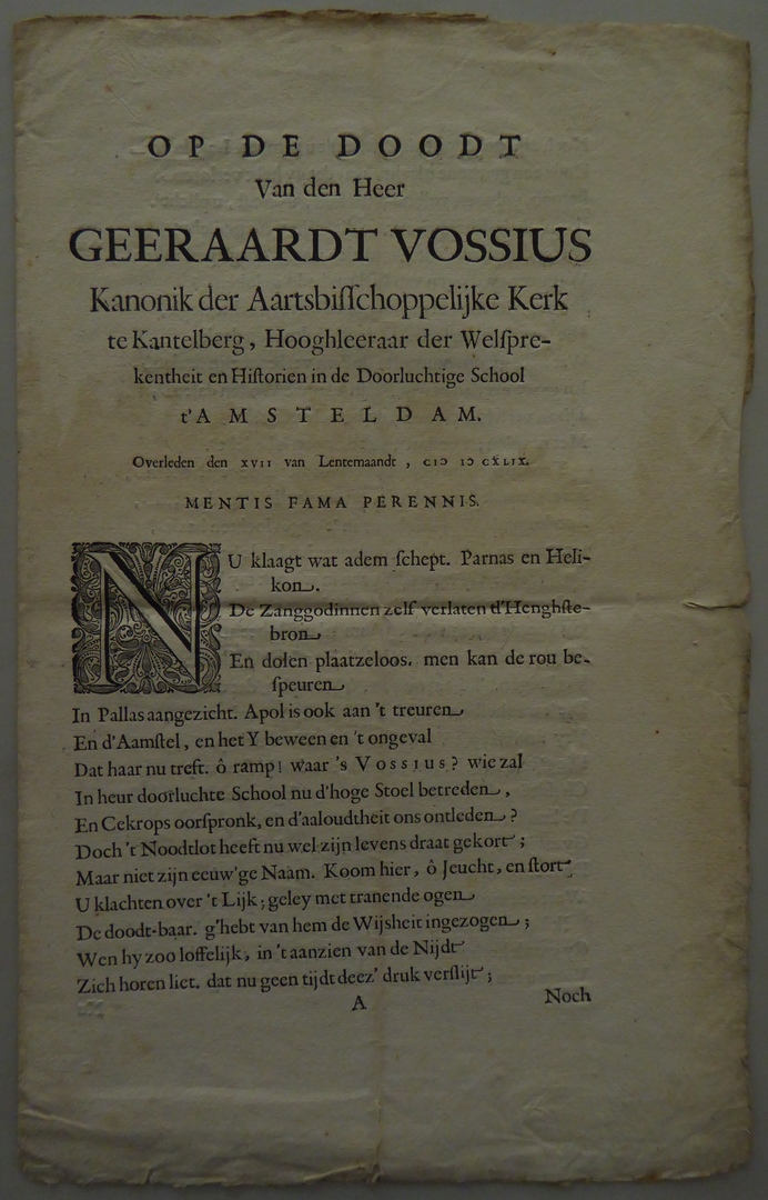 Op de dood ... Geeraardt Vossius ... te Kantelberg, Hooghleeraar der Welsprekentheit ...