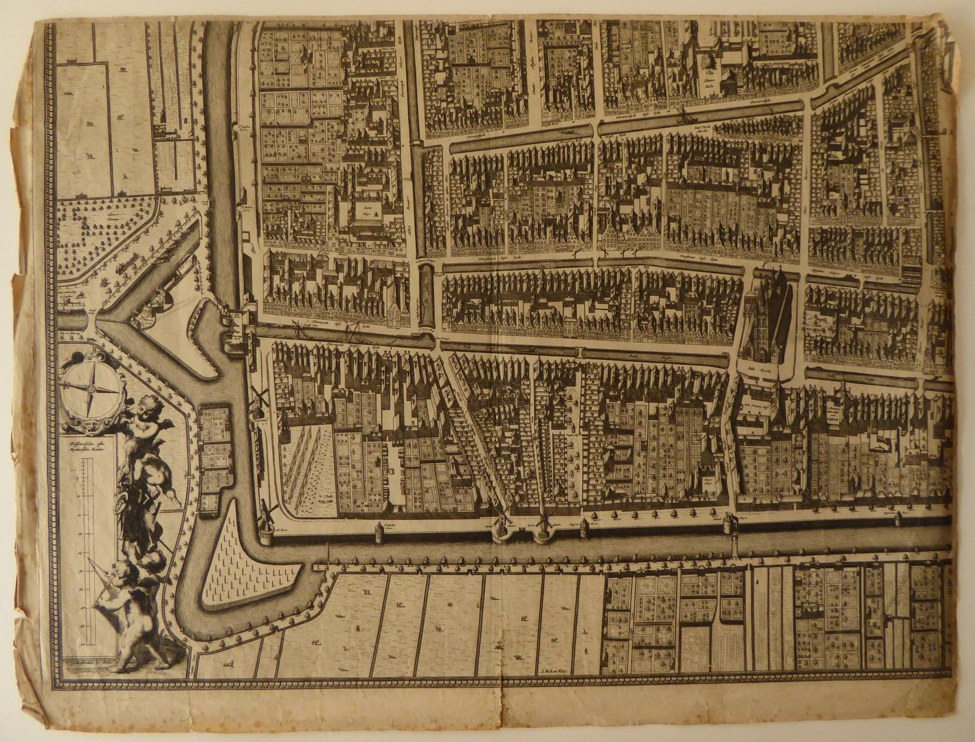 Delft, kaart van de stad, op bevel van de burgemeesters uitgegeven, in vier platen gedrukt: stuk linksonder