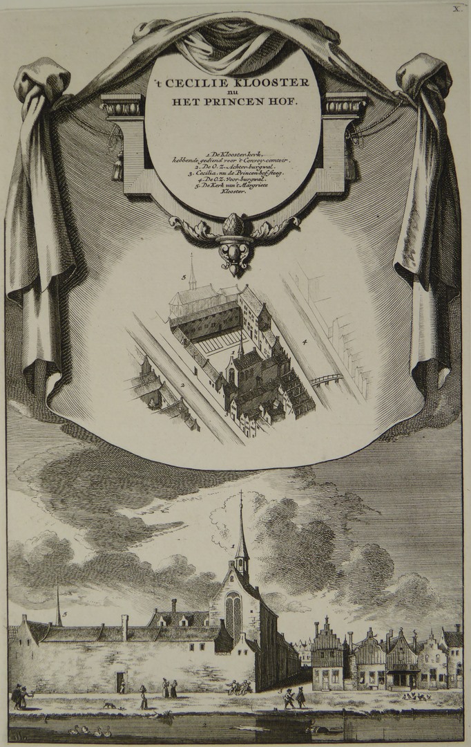 Amsterdam, Cecilieklooster, nu 't Princenhof, tussen de O.Z. Achterburgwal en de O.Z. Voorburgwal