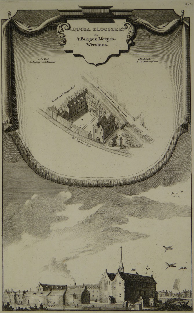 Amsterdam, Luciaklooster, nu 't Burger Meisjesweeshuis, tussen N.Z. Voorburgwal en Kalverstraat
