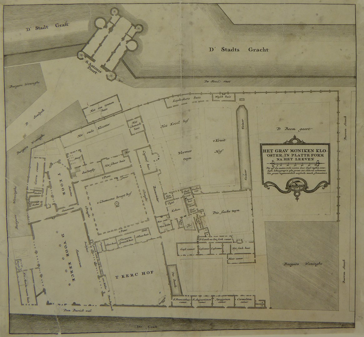 Amsterdam, plattegrond van het Grauwe Monikenklooster (Minderbroedersklooster)
