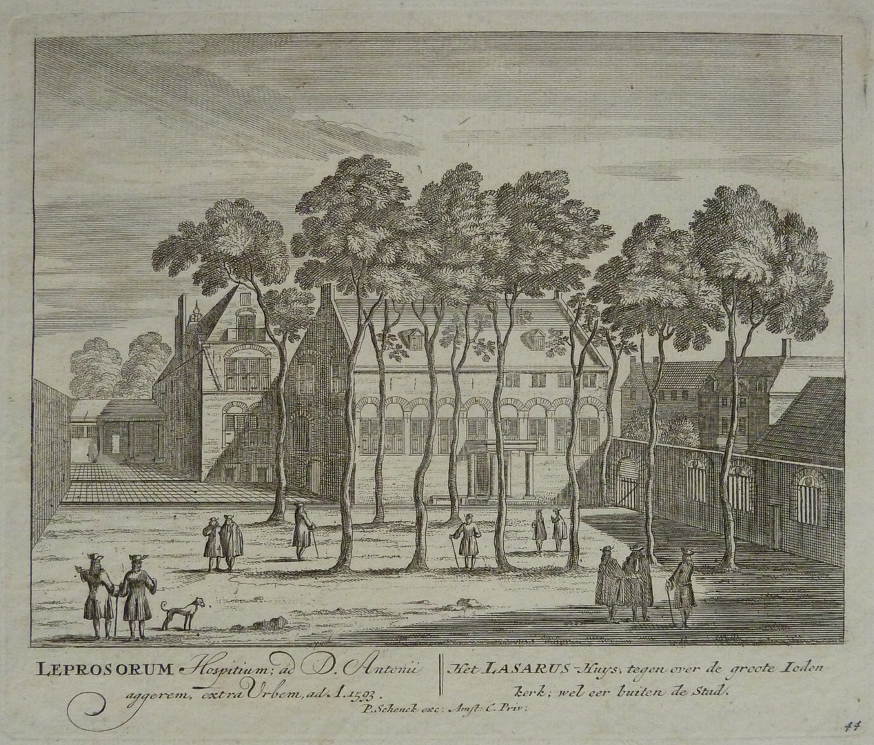 Amsterdam, Leprozen- of Lazarushuis met "Het Lazarus-Huys tegen over de groote Jodenkerk; wel eer buiten de stad"