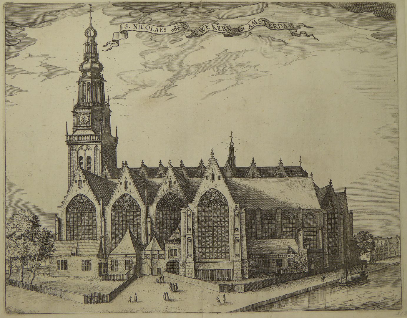 Amsterdam, Oude- of St. Nicolaeskerk, exterieur vanuit het zuiden gezien