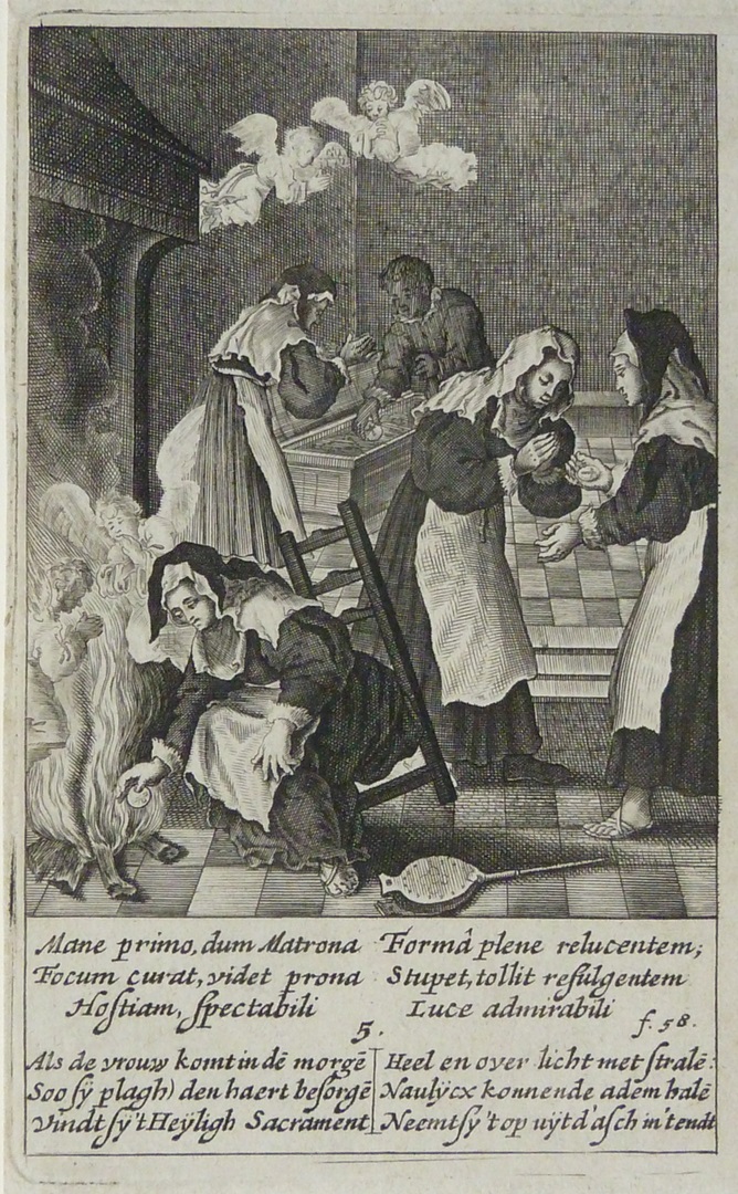 Mirakel van Amsterdam, uit L. Marius: de vrouw neemt de hostie uit het vuur