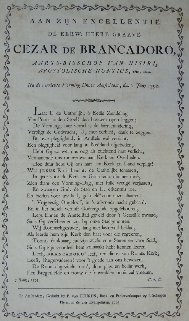 Lofdicht op Eerw. Heere Graave Cezar de Brancadoro, aartsbisschop van Nisibi