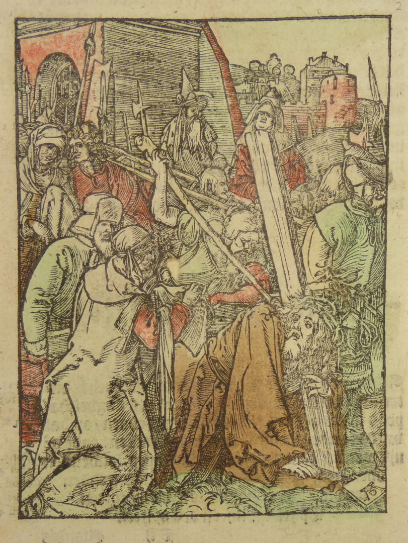 Kopieën naar Dürer kleine passie: Christus valt onder het kruis