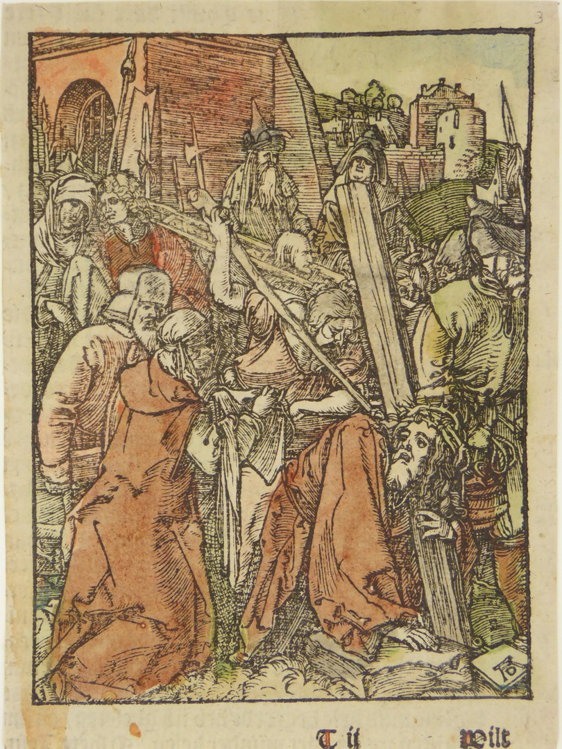 Kopieën naar Dürer kleine passie: Christus valt onder het kruis