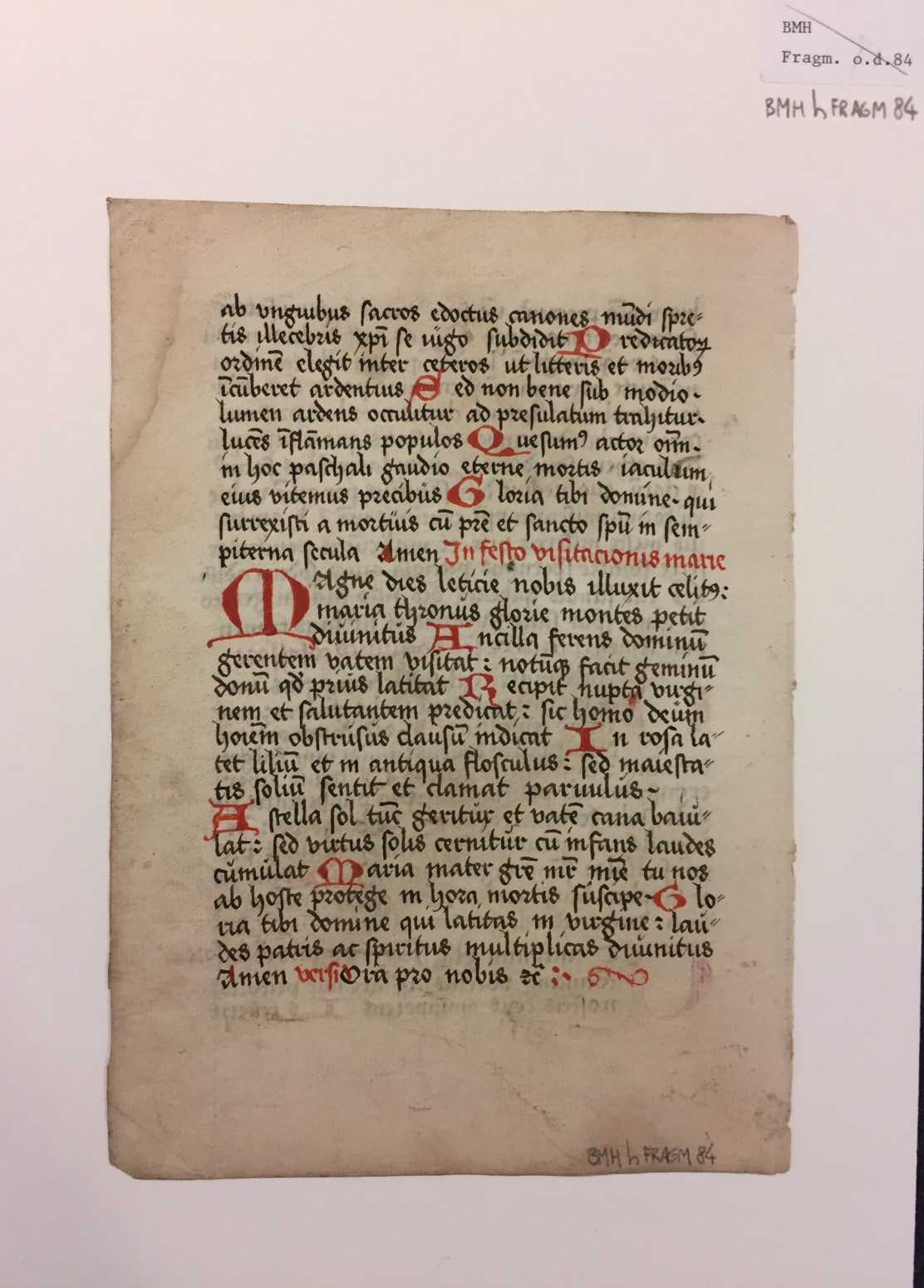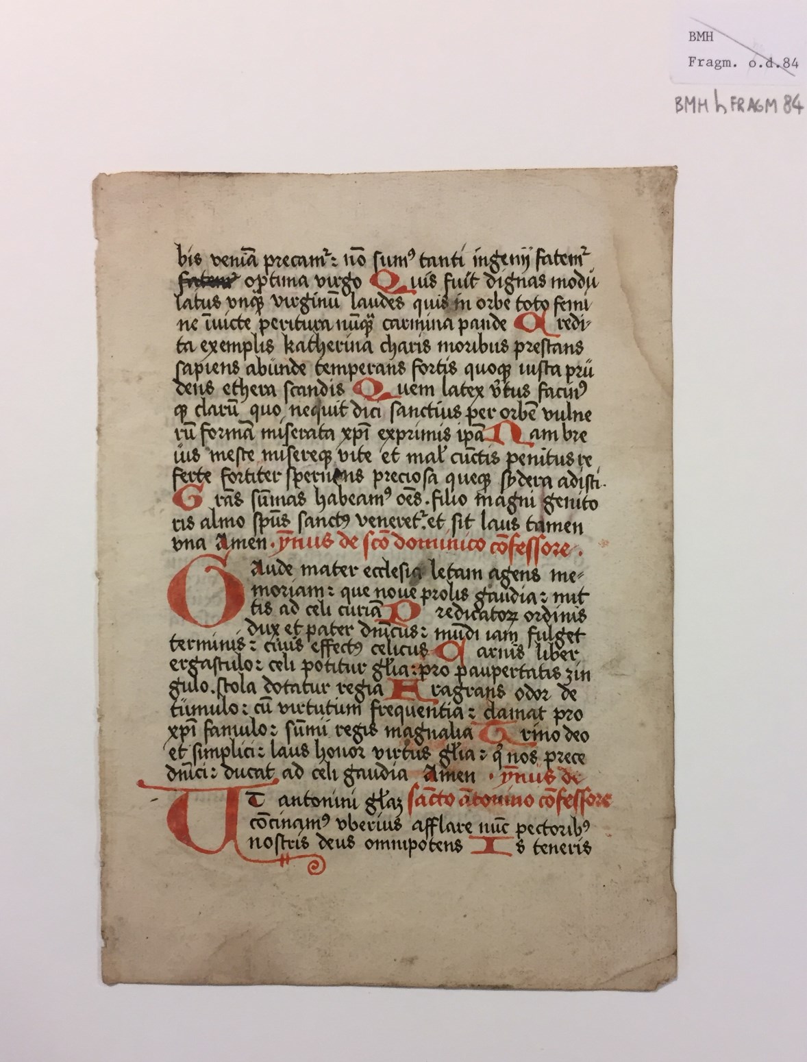 Fragment, hymnen ter ere van H. Catharina (deel), H. Dominicus, H. Antonius en op het feest van Maria Visitatie