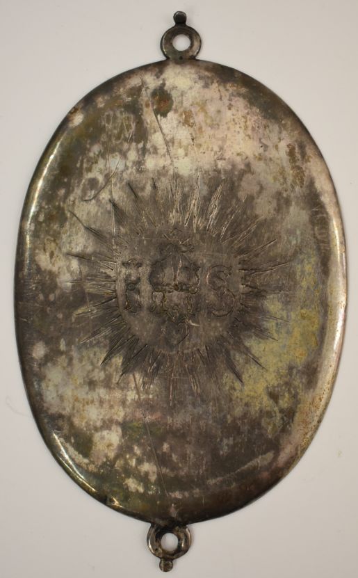 Missaalbeslag, middenstuk, medaillon met IHS in stralenkrans