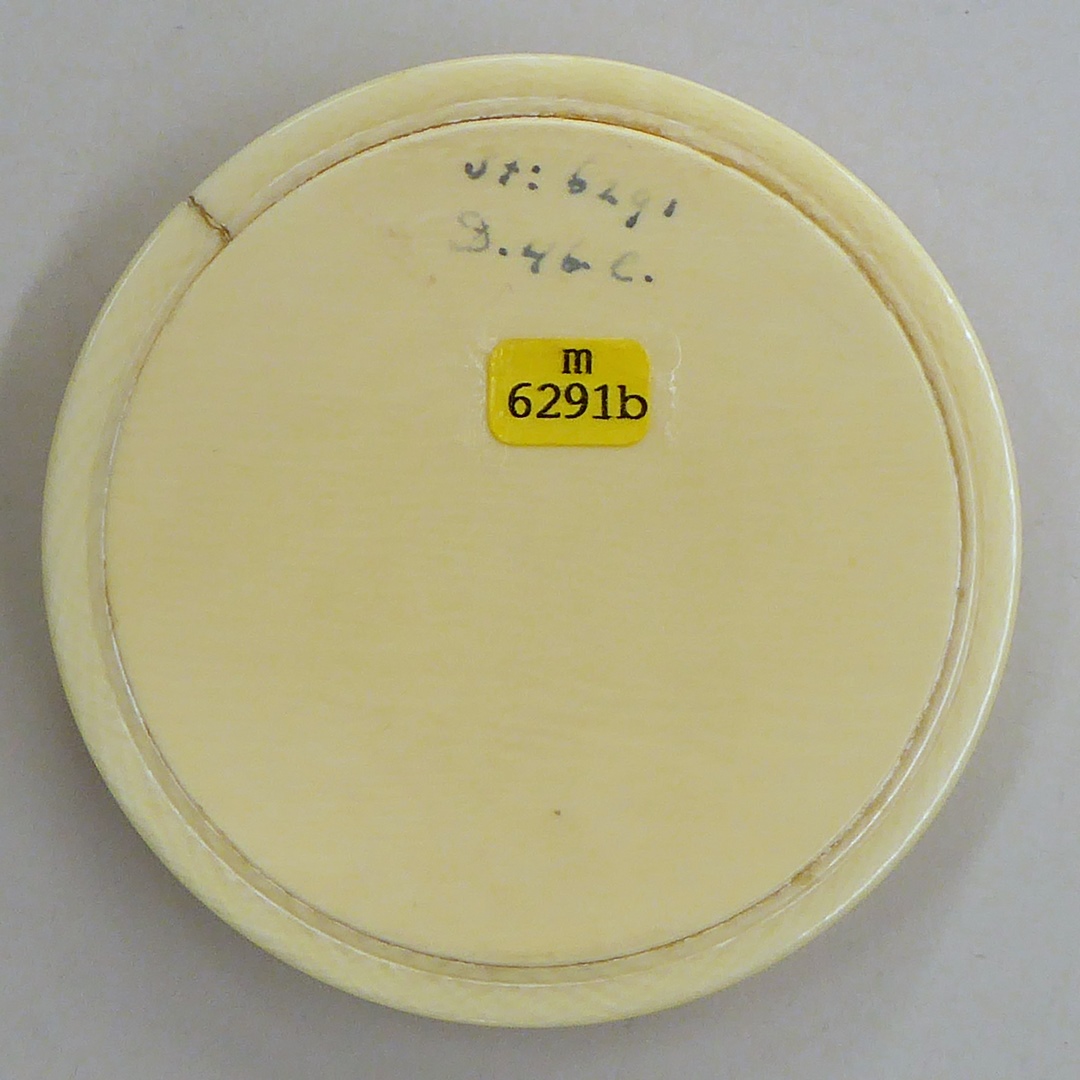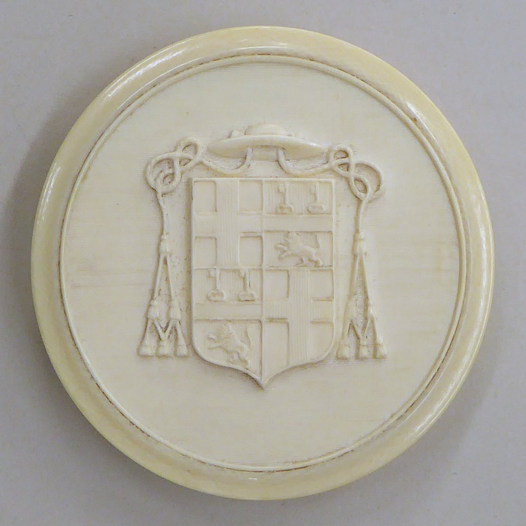 Ivoren penningfoedraal met wapen Mgr. Van Vree op deksel, behorend bij BMH m6291a