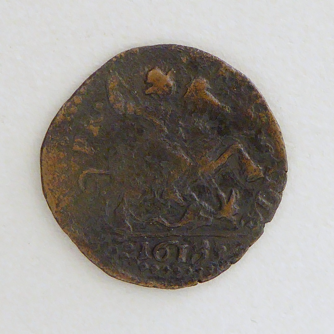 Quattrino met portret paus Paulus V, kz. St. Joris en de draak